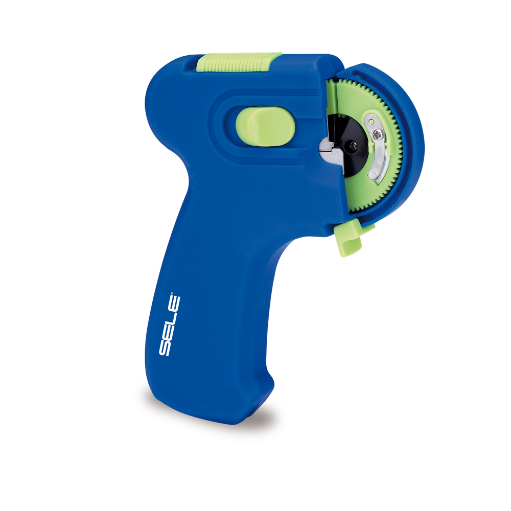 Električni stroj za vezanje udica, izdržljiva plastična konstrukcija i napajanje na baterije.